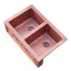 KSDB- 33″ Custom Copper Kitchen Double Bowl 50/50 Create A Custom Apron Front By Emailing A Photograph Or Line Drawing That You Love Or By Choosing Up To (6) Copper Tile From Over 200 Copper Tile Designs. Custom Designing A Copper Kitchen Sink Is Fast, Easy And Fun.
